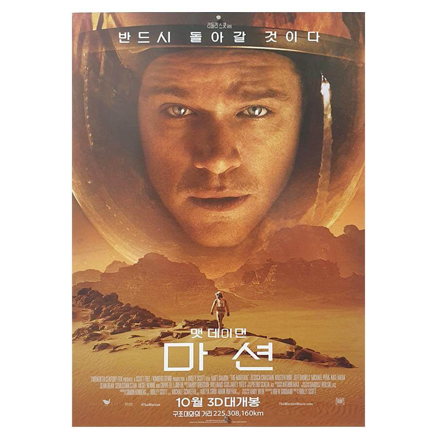 '앤디 위어'의 소설을 원작으로 하는 영화로 주인공 '마크 와트니'가 화성에서 일어난 사고로 낙오되면서 발생하는 생존 과정을 다룬다. '마션'은 '에이리언', '블레이드 러너'를 감독한 '리들리 스콧' 감독의 작품으로 황량한 화성을 배경으로 하지만 비주얼적으로 부족함을 느끼지 못하게 한다.